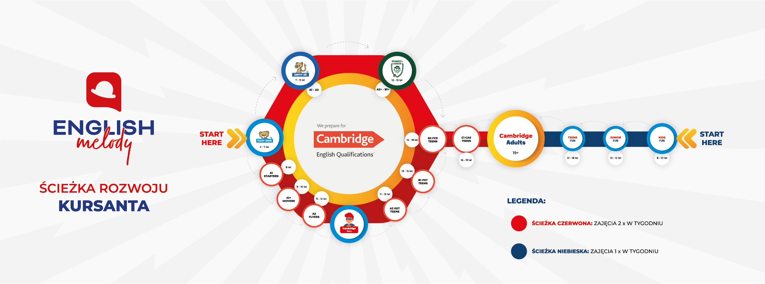 Dzięki naszym kursom dzieci komunikują się swobodnie z rówieśnikami jednocześnie świetnie się przy tym bawiąc. Nastoletni kursanci zdają międzynarodowe egzaminy Cambridge. A wszystko to dzięki naszej najlepszej i przemyślanej edukacji językowej. W English Melody uczymy licencjonowanymi metodami języka angielskiego Teddy Eddie i Savvy Ed, dzieci w wieku od 2 do 11 lat. A młodzież przygotowujemy do egzaminów Cambridge.